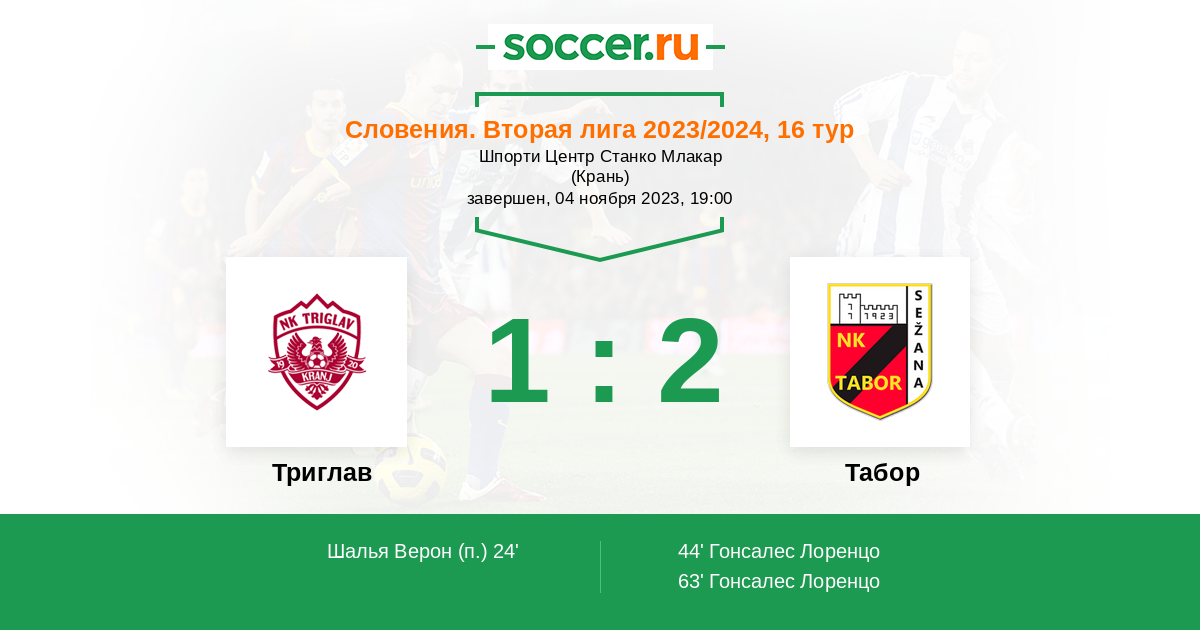 Протокол матча Триглав против Табор