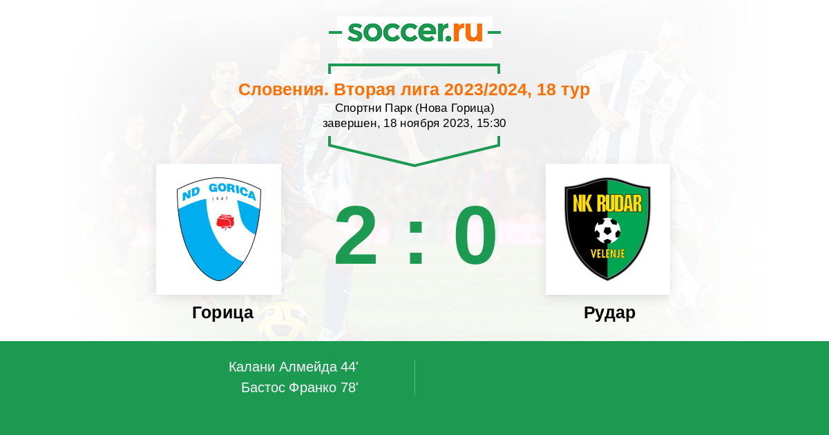 Протокол матча Горица против Рудар