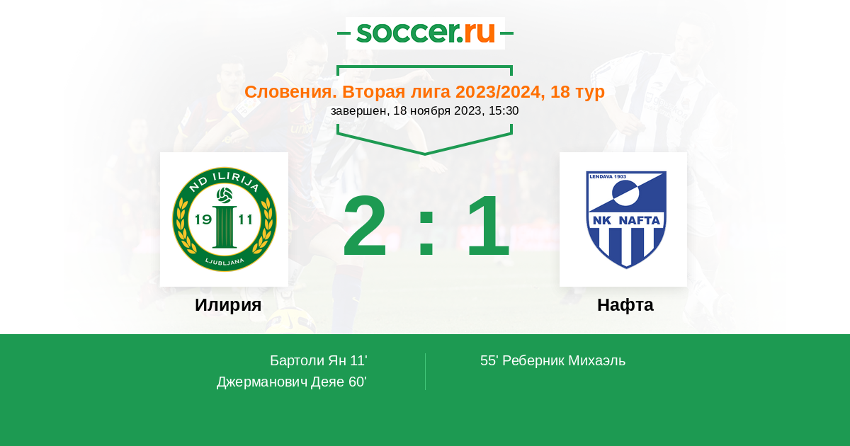Протокол матча Илирия против Нафта
