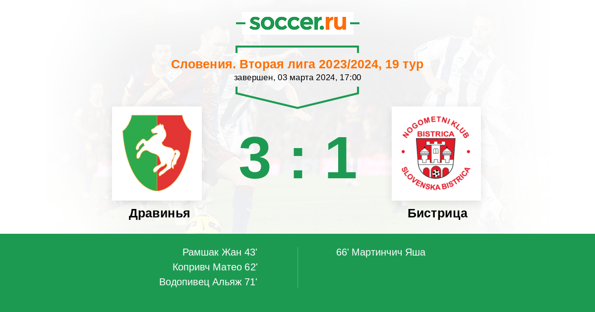 Протокол матча Дравинья против Бистрица