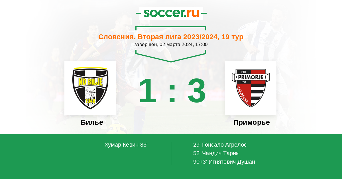 Протокол матча Билье против Приморье