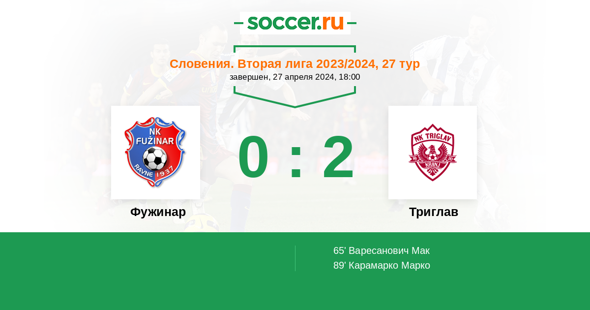 Протокол матча Фужинар против Триглав