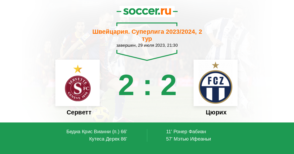 Протокол матча Серветт против Цюрих