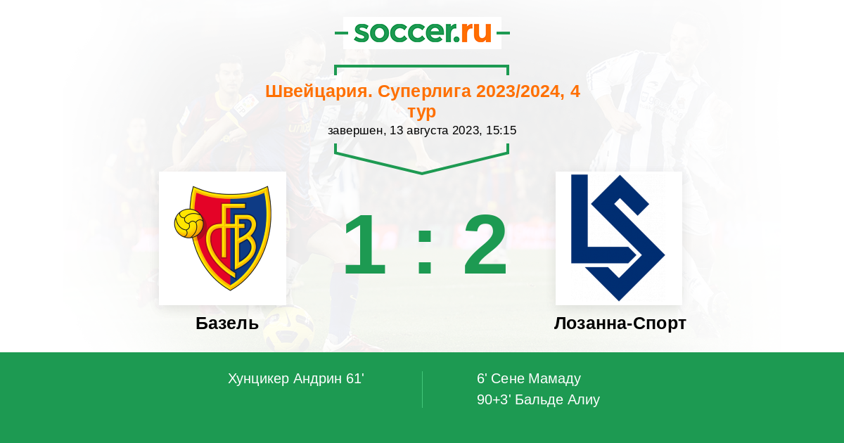 Протокол матча Базель против Лозанна-Спорт