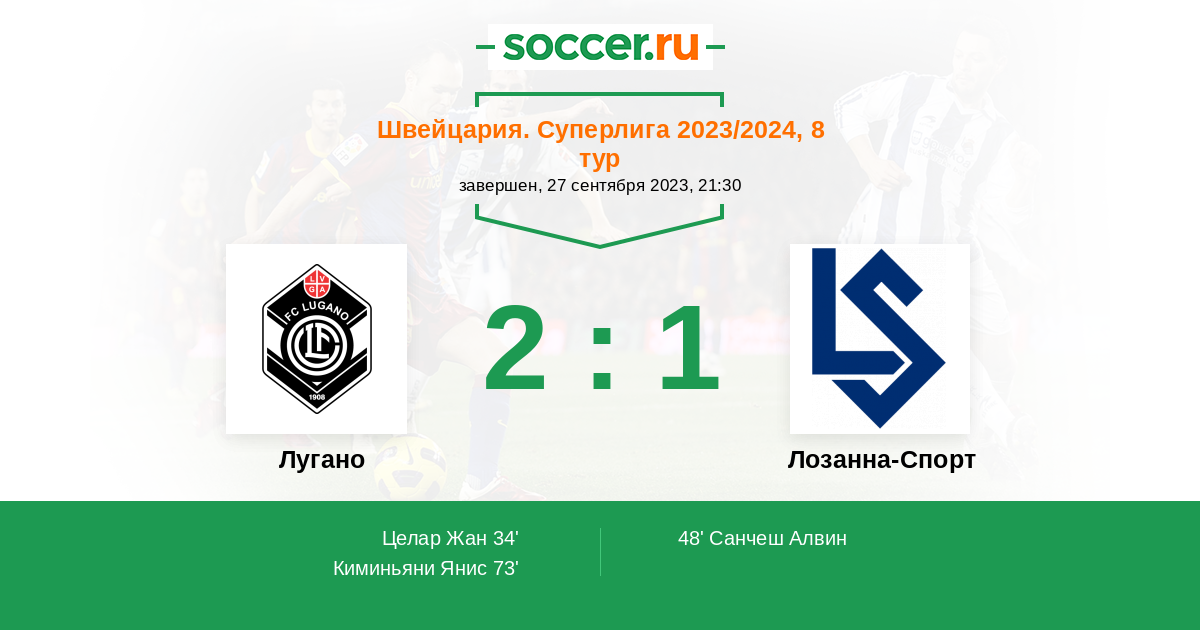 Протокол матча Лугано против Лозанна-Спорт