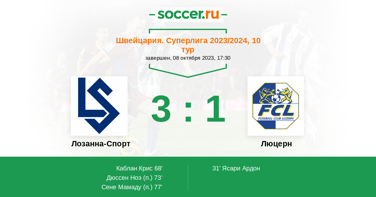 Протокол матча Лозанна-Спорт против Люцерн