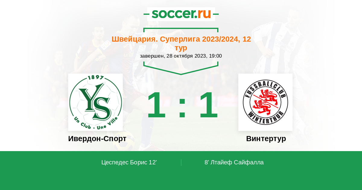 Протокол матча Ивердон-Спорт против Винтертур