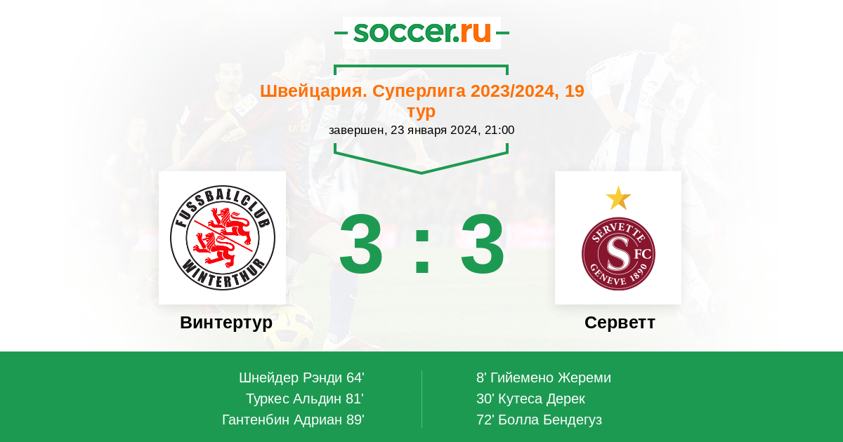 Протокол матча Винтертур против Серветт