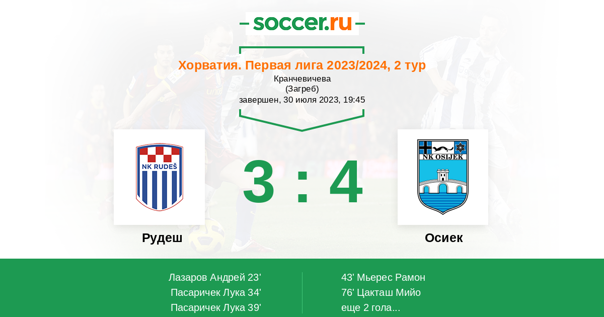 Протокол матча Рудеш против Осиек