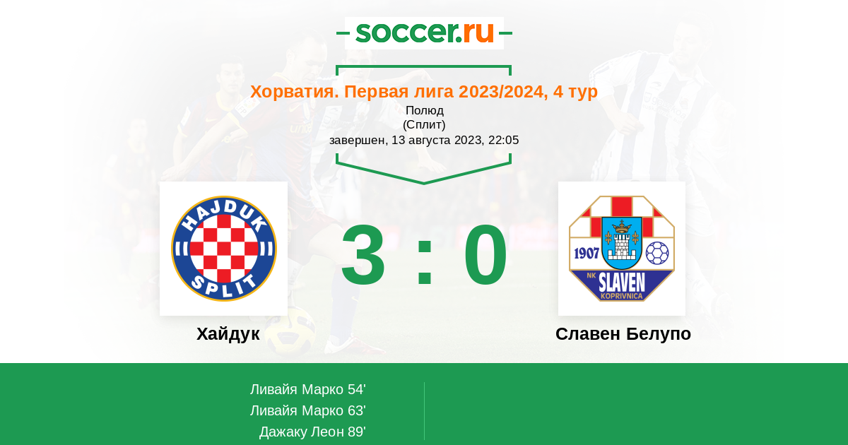 Протокол матча Хайдук против Славен Белупо