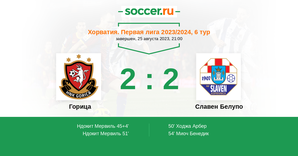Протокол матча Горица против Славен Белупо