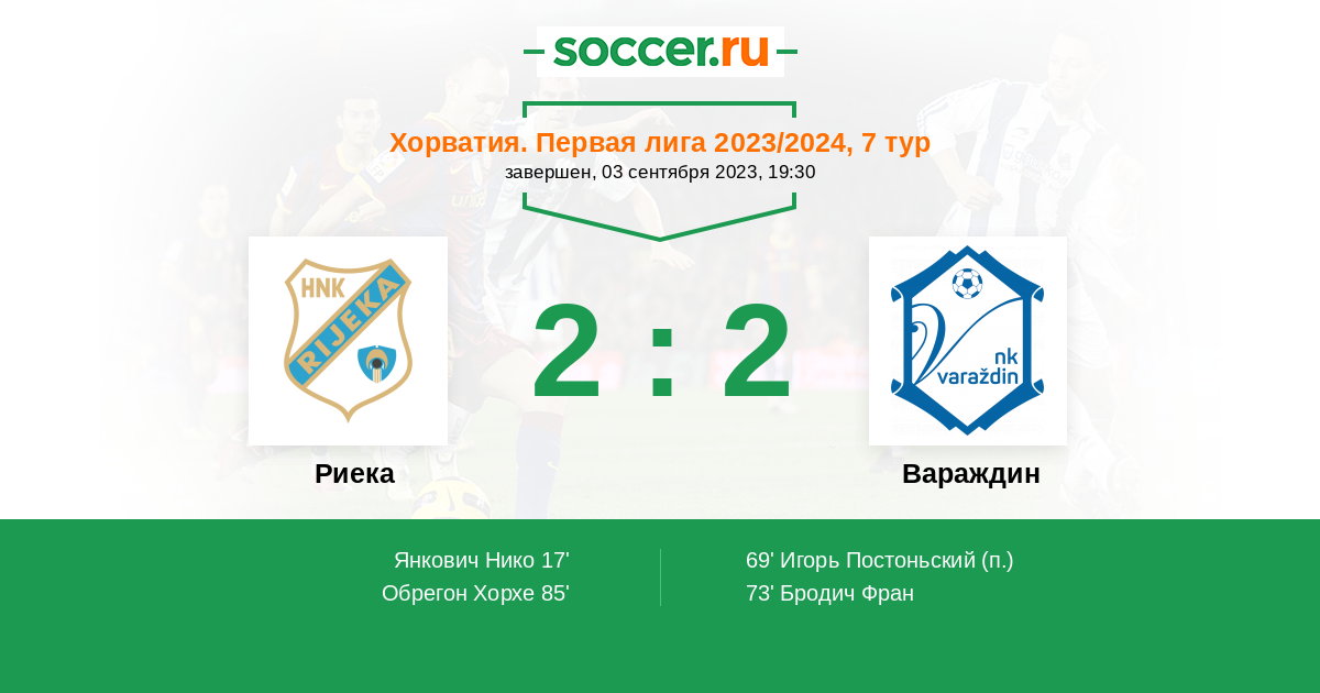 Протокол матча Риека против Вараждин