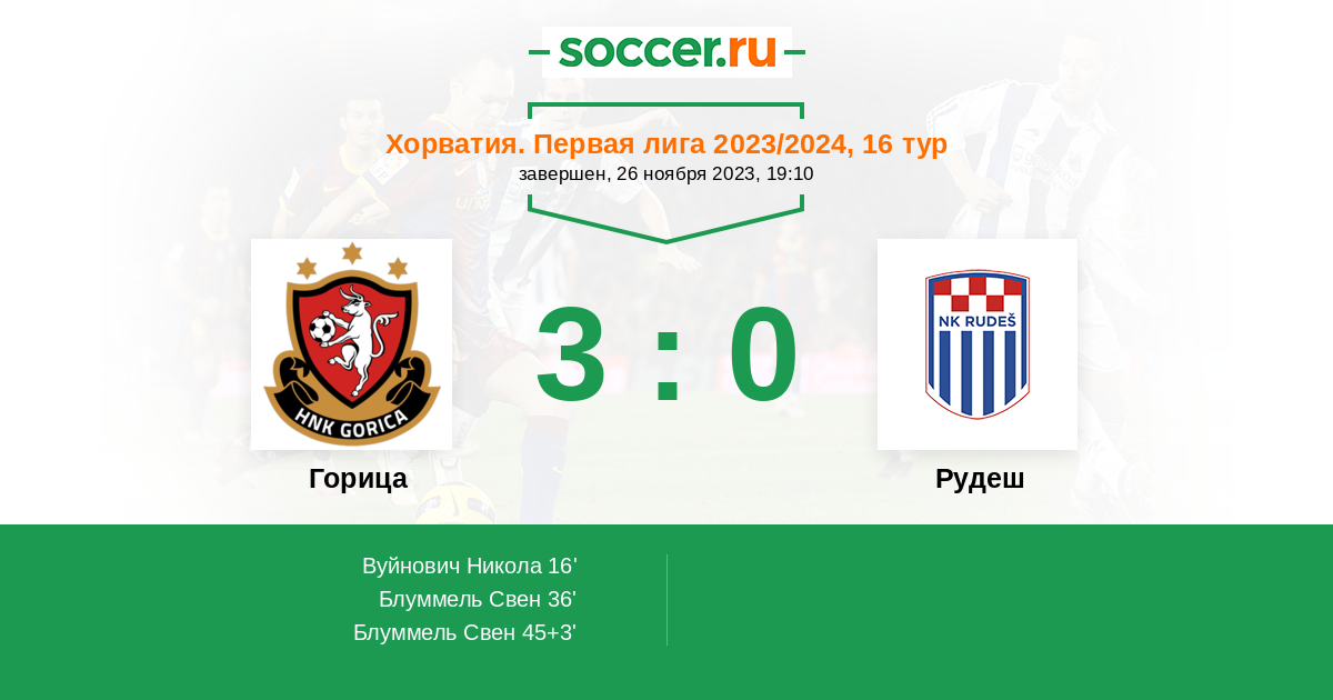 Протокол матча Горица против Рудеш
