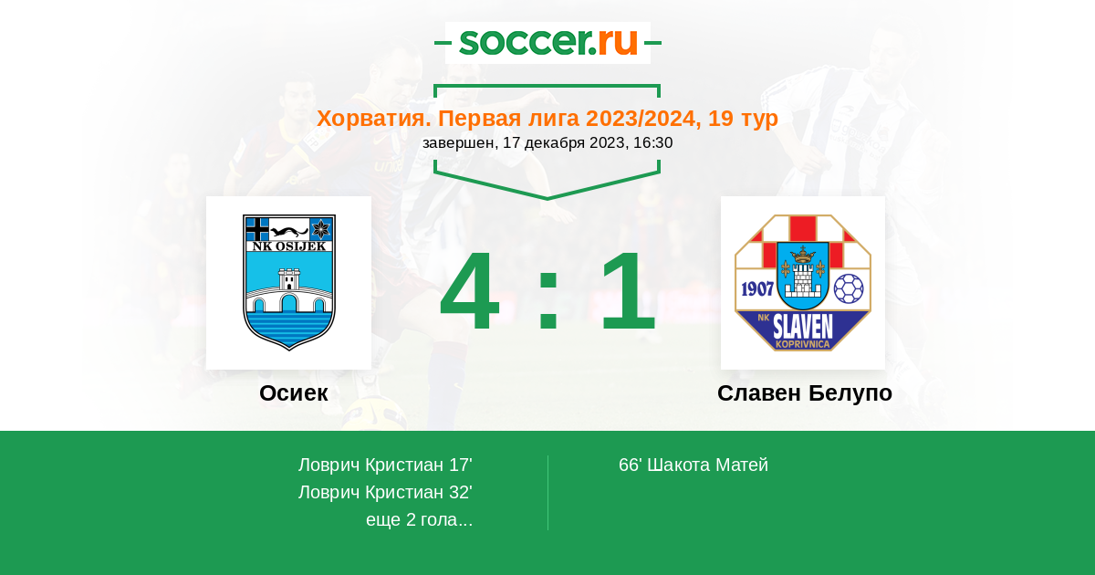 Протокол матча Осиек против Славен Белупо