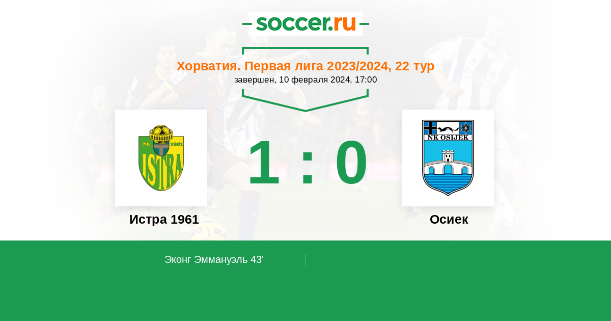 Протокол матча Истра 1961 против Осиек