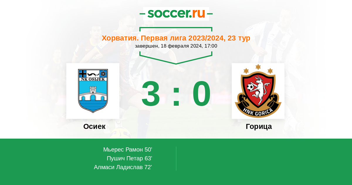 Протокол матча Осиек против Горица