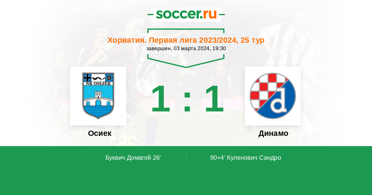Протокол матча Осиек против Динамо