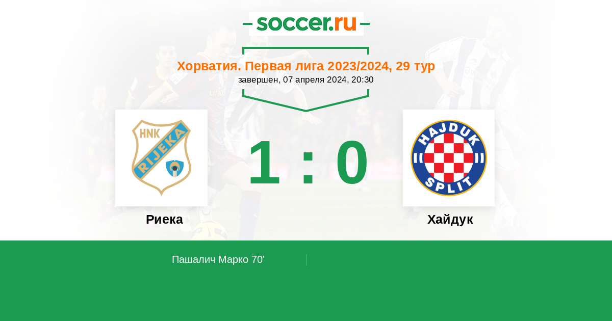Протокол матча Риека против Хайдук