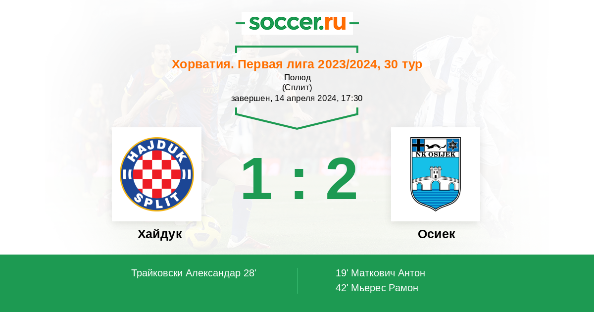 Протокол матча Хайдук против Осиек
