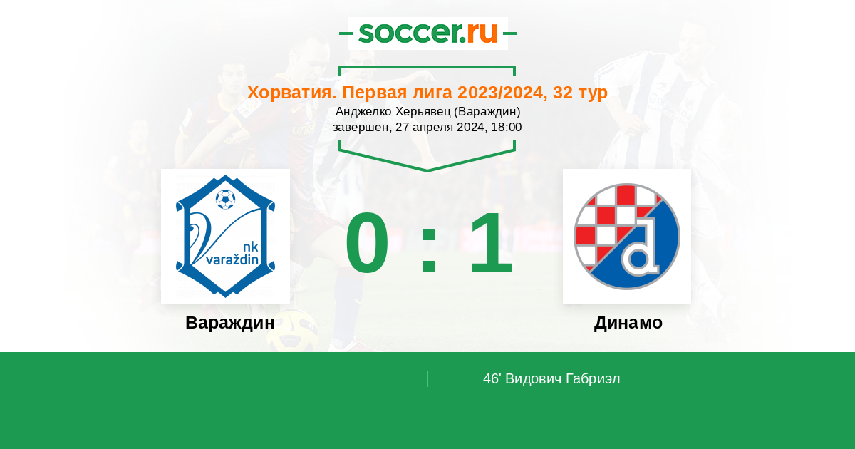 Протокол матча Вараждин против Динамо