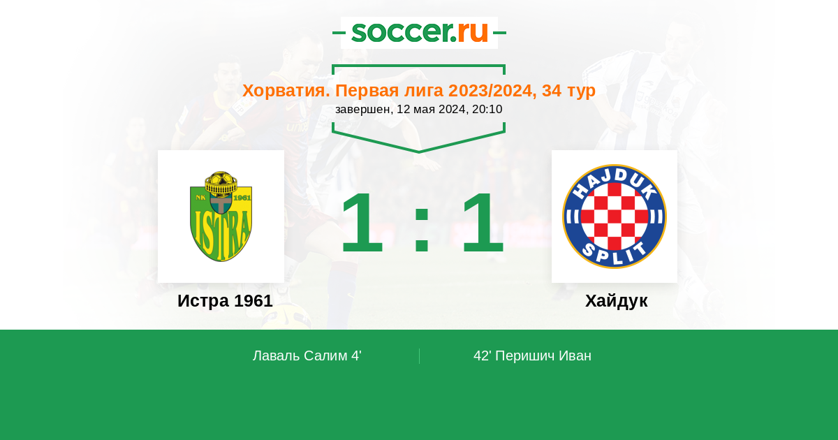 42' (1:1) Перишич Иван (4) (Диалло Исмаэль (5))