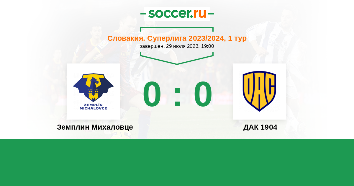 Протокол матча Земплин Михаловце против ДАК 1904
