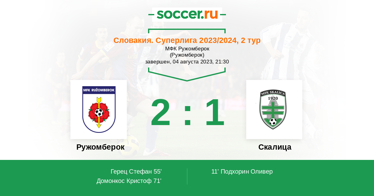 Протокол матча Ружомберок против Скалица
