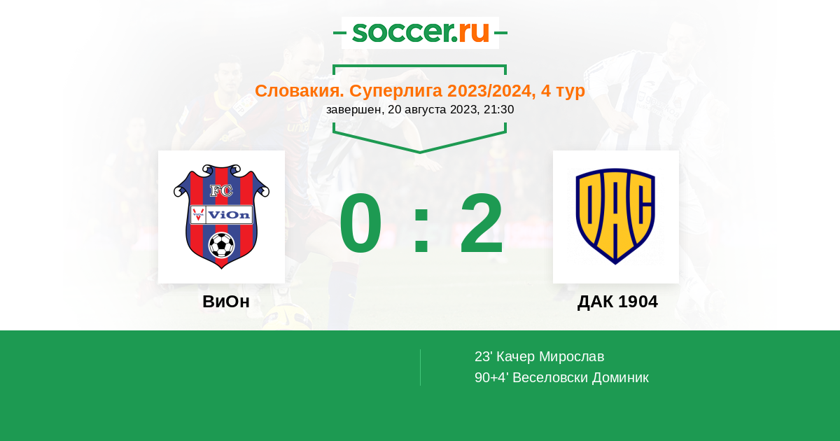 Протокол матча ВиОн против ДАК 1904
