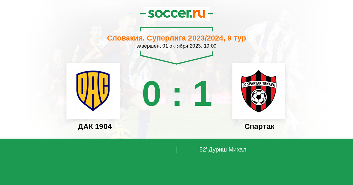 Протокол матча ДАК 1904 против Спартак