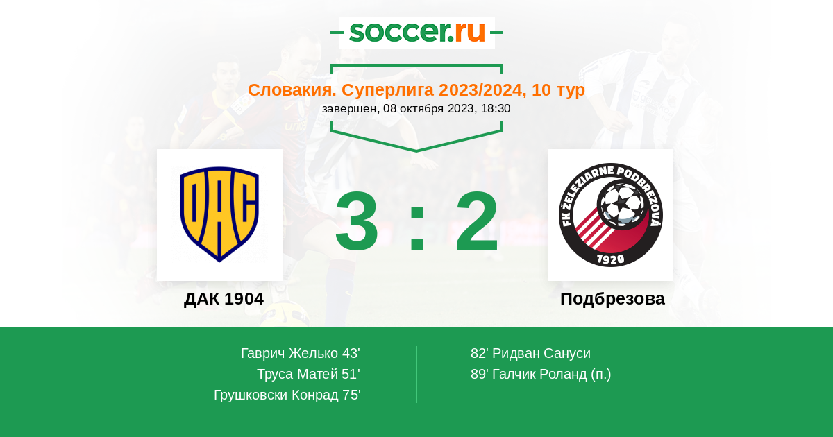 Протокол матча ДАК 1904 против Подбрезова