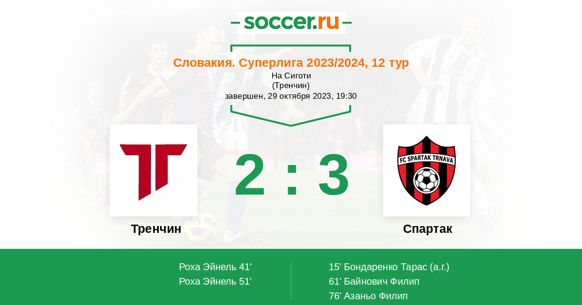 Протокол матча Тренчин против Спартак