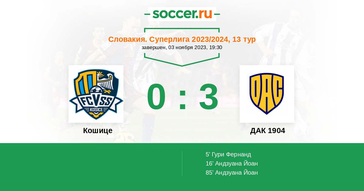 Протокол матча Кошице против ДАК 1904