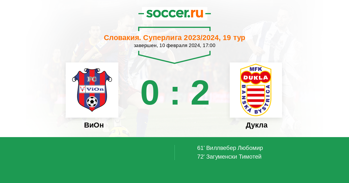 Протокол матча ВиОн против Дукла