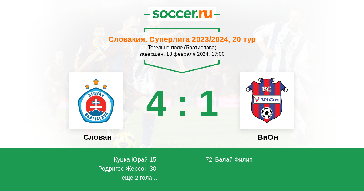 Протокол матча Слован против ВиОн