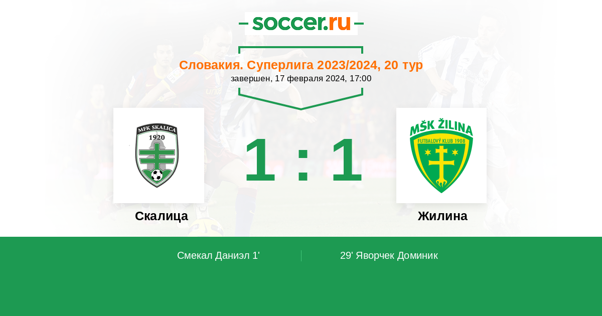 Протокол матча Скалица против Жилина