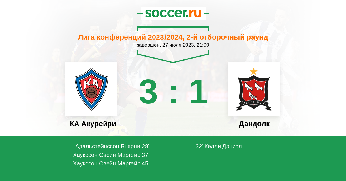 Протокол матча КА Акурейри против Дандолк