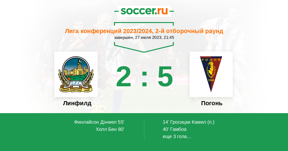 Протокол матча Линфилд против Погонь