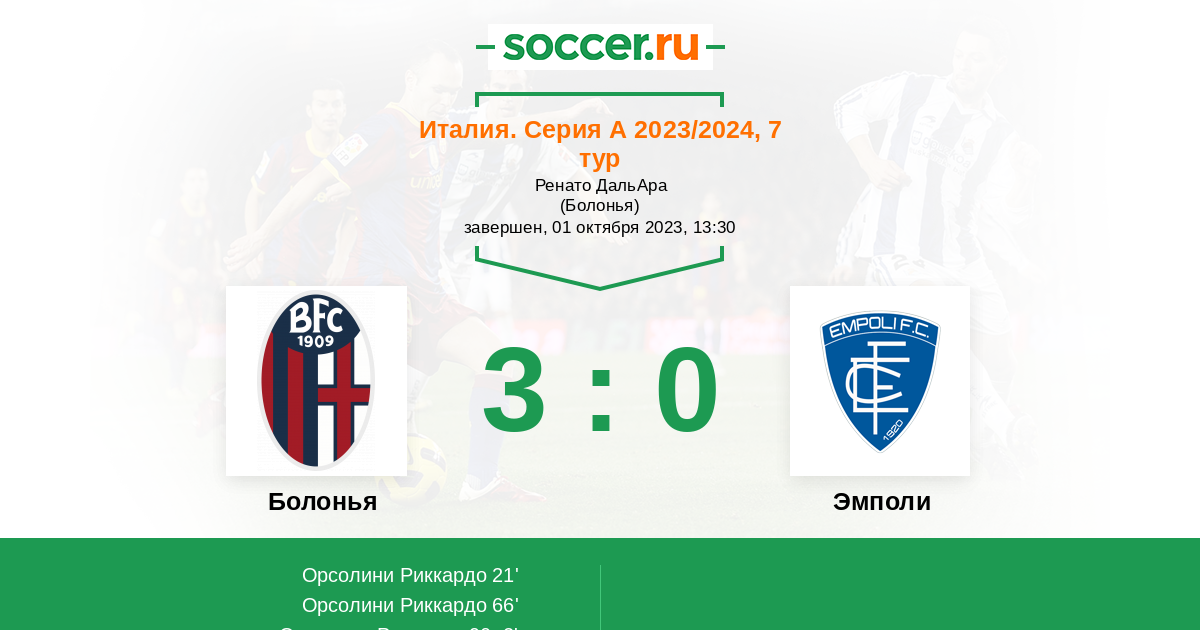 Протокол матча Болонья против Эмполи