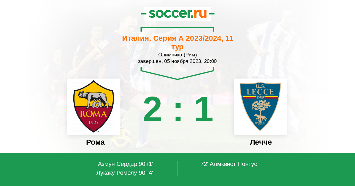 Гол90+4' (2:1) Лукаку Ромелу (90) (Дибала Пауло (21))