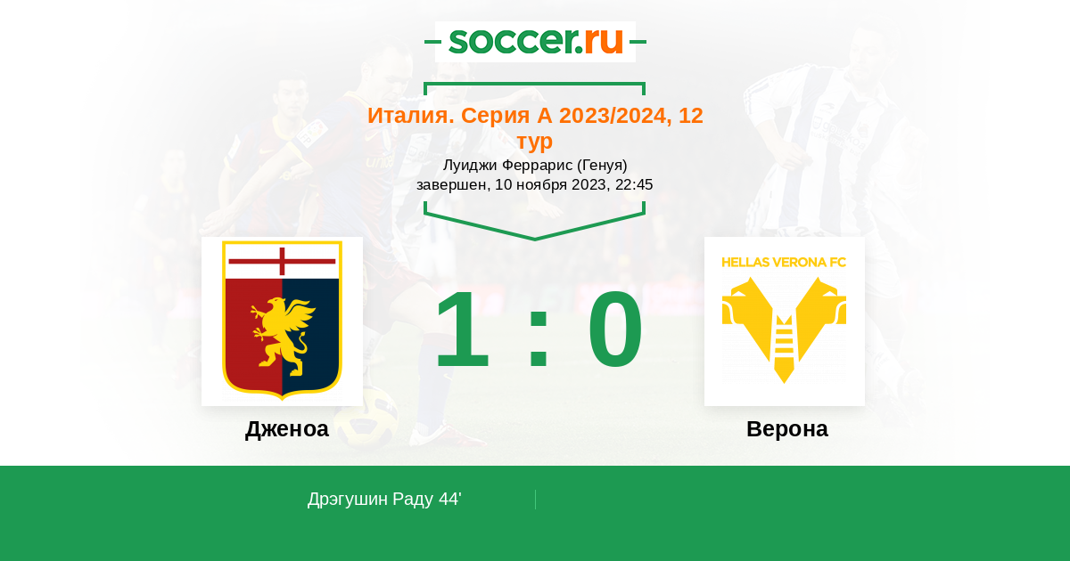 Плохо смотрятся обе команды по истечению 11 туров, но хозяева поля хотя бы вне зоны вылета, а вот “Верона” как раз находится на 18-м месте. Хоть “Дженоа” и фаворит матча, но при этом мы не видим глобального перевеса у хозяев поля.