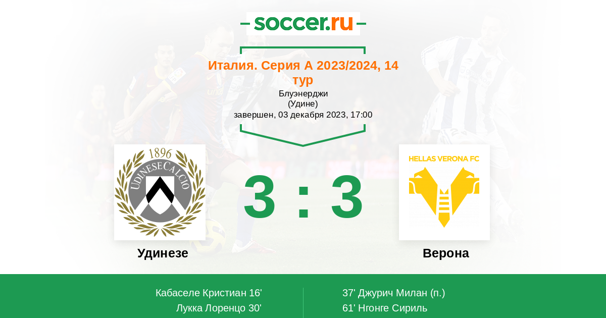 Протокол матча Удинезе против Верона