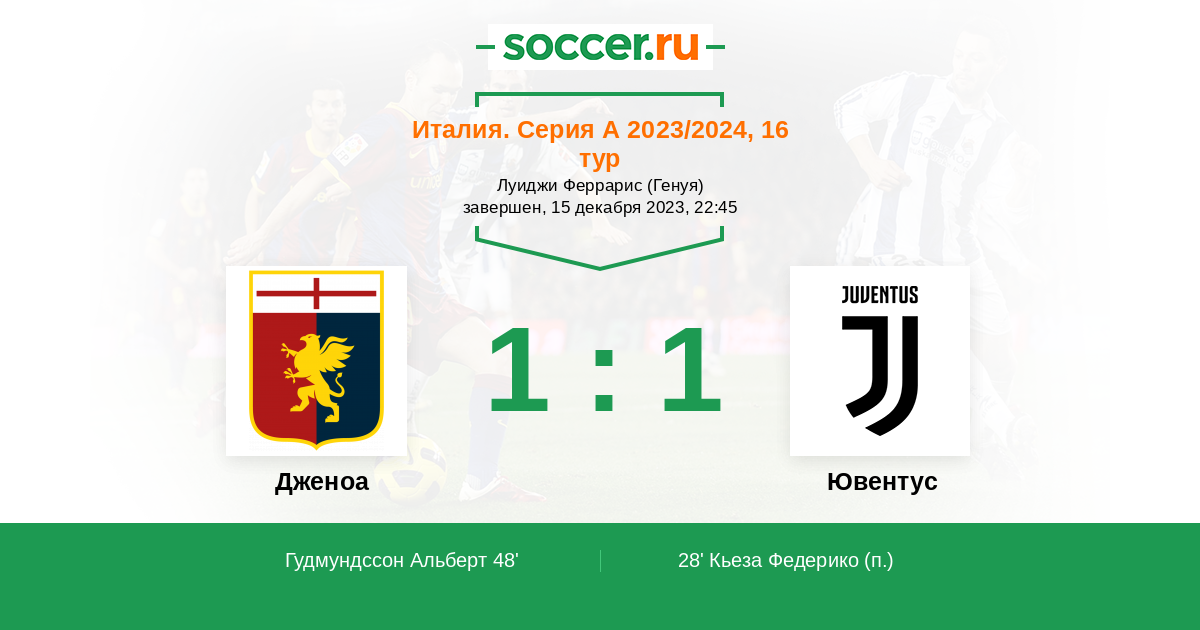 Протокол матча Дженоа против Ювентус