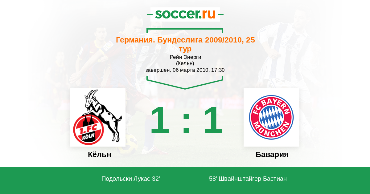 Протокол матча Кёльн против Бавария