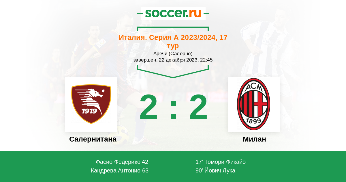 Протокол матча Салернитана против Милан