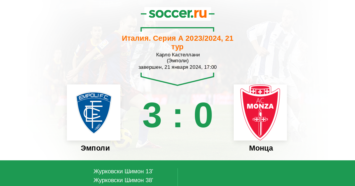 Протокол матча Эмполи против Монца