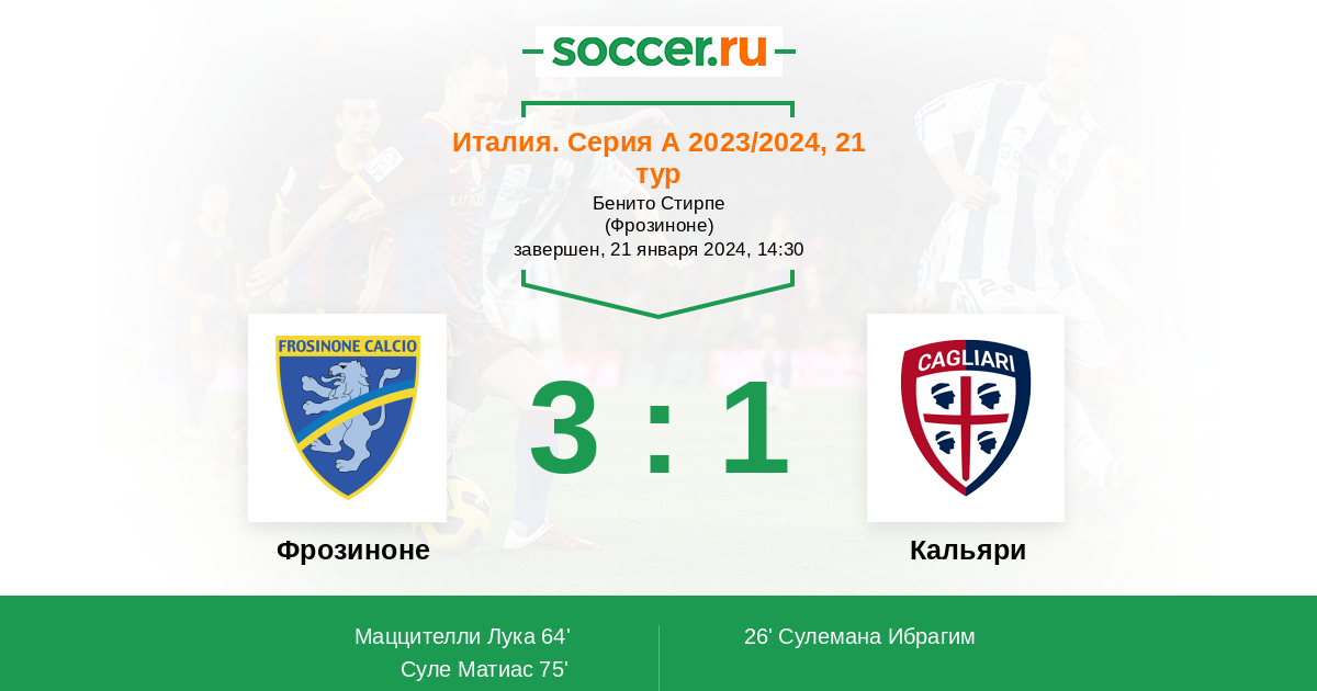 Протокол матча Фрозиноне против Кальяри