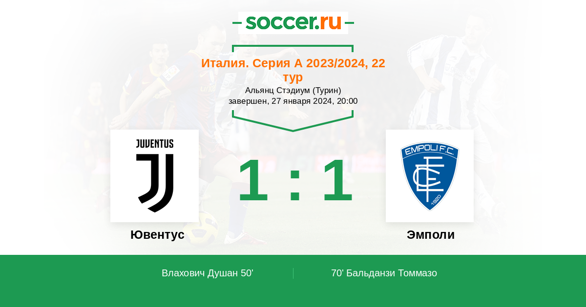 В предстоящем матче 22 - го тура итальянской Серии А между командами Ювентус Турин и Эмполи, более чем явным фаворитом на победу команда хозяев Ювентус Турин, так как они играют лучше.