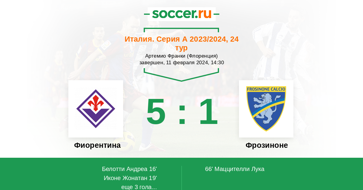 Протокол матча Фиорентина против Фрозиноне