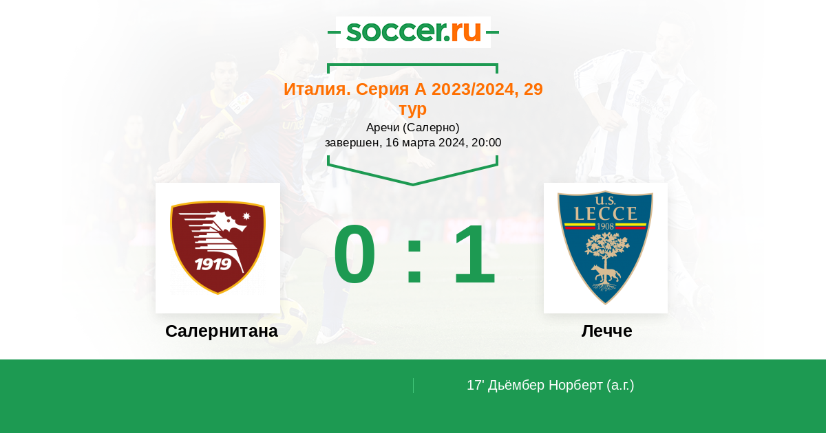 Протокол матча Салернитана против Лечче