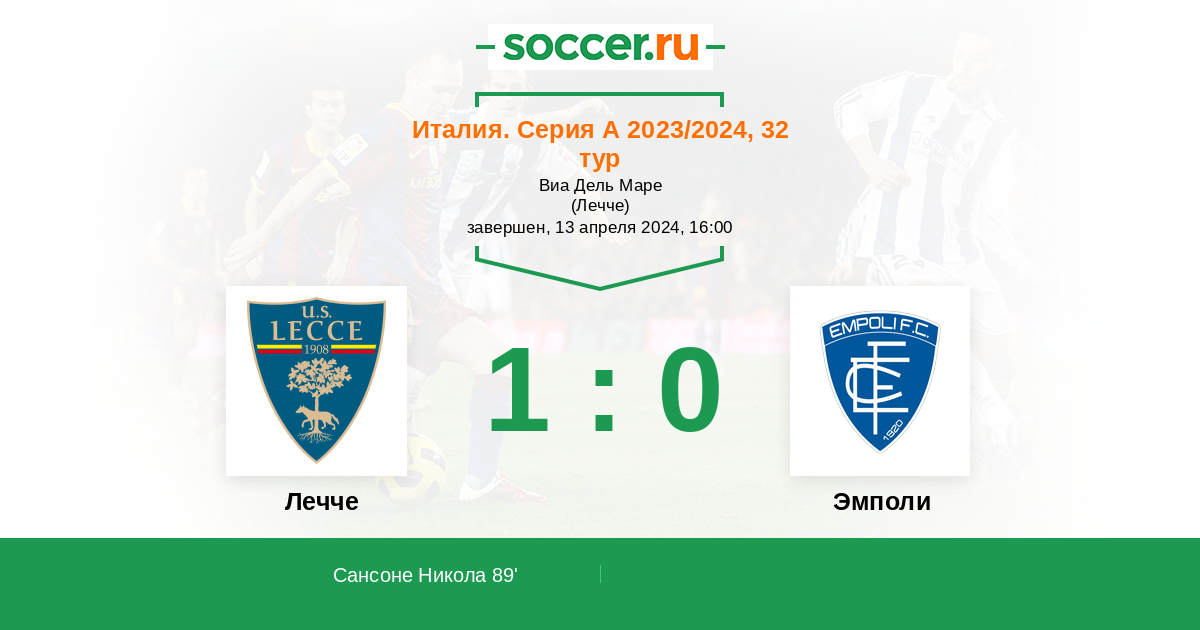 Протокол матча Лечче против Эмполи